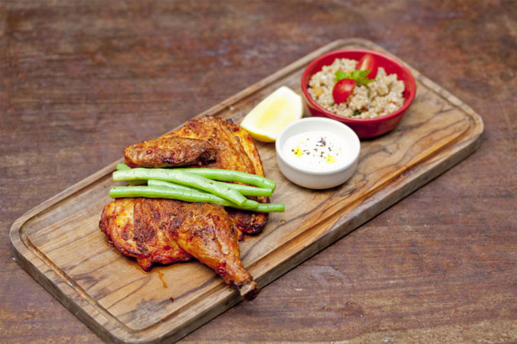 ตบท้ายด้วย Organic Roast Chicken ใช้ไก่ที่หมักด้วยเฮิร์บจนซึมเข้าเนื้อ 3 วัน นำมาอบแบบพอดีๆ จนหนังกรอบนอกข้างในฉ่ำ นุ่ม กินคู่กับคีนัวตาบูเลห์และซอสปรุงรส เป็นการตบท้ายมื้อที่มีความสุขยิ่ง