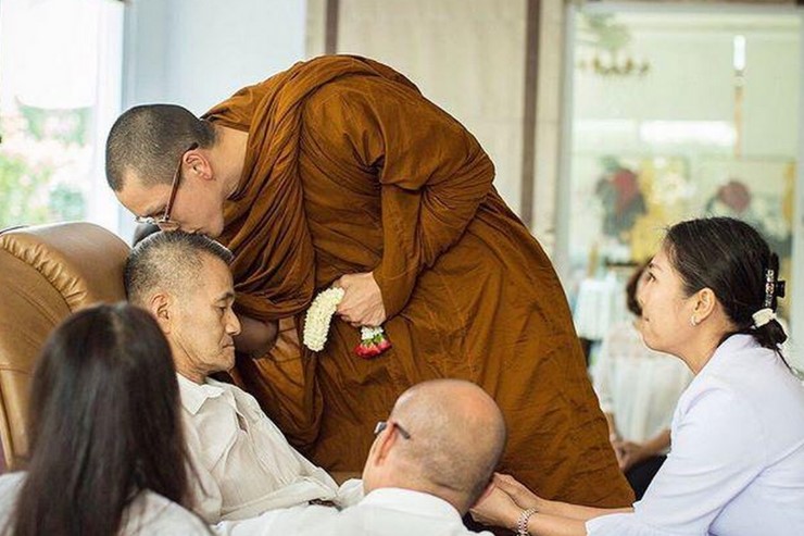 ล่าสุดคุณแม่แก้ว ได้ทำการนิมนต์พระณเดชน์มาที่บ้านในกรุงเทพฯเพื่อเยี่ยมโยมคุณพ่อโยชิโอที่กำลังป่วยจึงไม่สามารถไปร่วมงานอุปสมบทของลูกชายได้