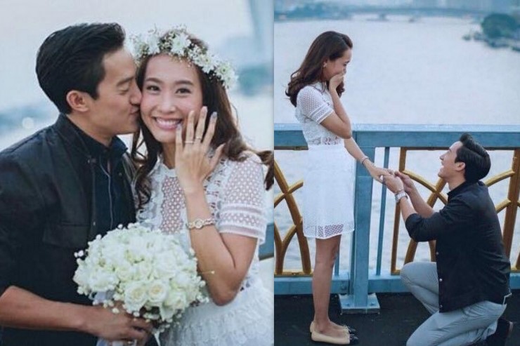 เรียกได้ว่าไม่ต้องไปไกลถึงต่างประเทศเหมือนคู่อื่น ใช้กรุงเทพยามเย็นท่ามกลางพระอาทิตย์ใกล้ตกเป็นโลเคชั่น บรรยากาศเย็นกำลังดีแค่นี้ก็สวีทหวานโรแมนติกสุดแล้วจ๊ะ โดยงานนี้มีครอบครัวและเพื่อนสนิทในวงการมาร่วมยินดีเป็นสักขีพยานกันเพียบ