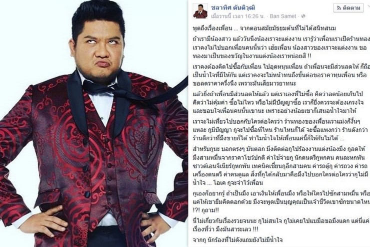เบน ชลาทิศ ปรี๊ดแตก! ถูกด่าไม่มีน้ำใจ หลังไปร้องเพลงในงานแต่งเพื่อน