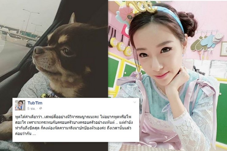 ล่าสุดมีคนตั้งกระทู้กล่าวหาว่าเธอนอกใจสามีกลายเป็นที่วิพาษ์วิจารณ์อย่างหนักในโลกออนไลน์ จนสาวทับทิม ออกมาโพสต์เพียงสั้นๆ ผ่านทางเฟซบุ๊กแฟนเพจว่า...