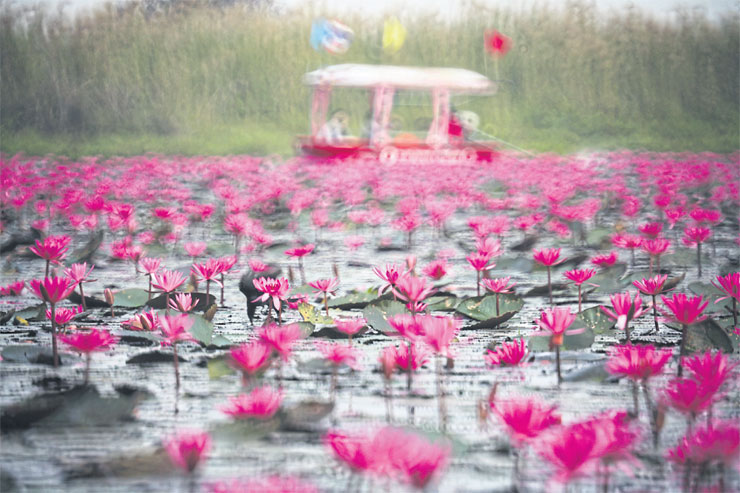 ปลายเดือน ม.ค.ที่ผ่านมา ผมมีโอกาสได้ไปถ่ายภาพทะเลบัวแดงที่หนองหาน อ.กุมภวาปี จ.อุดรธานี วันนั้นผมไปถึงในช่วงเช้า อากาศหนาวหน่อยๆ นักท่องเที่ยวยังไม่หนาแน่น พอลงเรือได้พี่คนขับเรือก็มุ่งพาไปยังจุดที่ดอกบัวขึ้นหนาแน่น เรือของนักท่องเที่ยวคณะอื่นๆ หลายลำก็มากันที่บริเวณนี้ ได้มาชมตรงจุดนี้แล้วอิ่มตามากๆ สำหรับนักถ่ายภาพคือสวรรค์เลยครับ เพราะดอกบัวขึ้นหนาแน่น ไม่รอช้าใช้เลนส์ 70-200 มม. เปิดรูรับแสงกว้างสุดที่ 2.8 กะว่าฉากหลังละลายสวยๆ