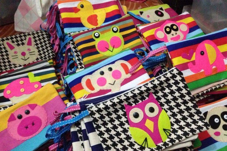 บางครั้งถ้าลูกค้าอยากได้ลวดลายและสีสันแบบไหนเป็นพิเศษ เขาก็จะสั่งให้ทำตามรูปแบบที่ต้องการ ซึ่งทุกวันนี้ก็มีออร์เดอร์เพิ่มขึ้นเรื่อยๆ จนทำไม่ทัน กระเป๋าผ้าส่วนใหญ่ที่ทำจะเป็นกระเป๋าใส่เหรียญ ใส่เครื่องสำอาง ใส่เครื่องเขียน และใส่มินิไอแพดได้ ซึ่งแต่ก่อนเราเคยทำกระเป๋าผ้าแบบสะพายออกมาด้วย แต่เนื่องจากเวลาที่จำกัดเพราะต้องทำงานประจำไปด้วย ตอนหลังจึงเลิกทำกระเป๋าผ้าแบบสะพายไปก่อน”