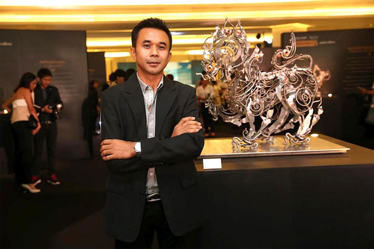 ผลงานประติมากรรมที่จัดแสดงผนวกกับการจัดวางแสงเงาตกกระทบดูขรึมขลัง แม้จะอยู่ในห้างสรรพสินค้าที่ผู้คนขวักไขว่ แต่พลังของชิ้นงานแต่ละชิ้นได้สะท้อนเอกลักษณ์ที่พลิ้วไหวของศิลปะที่ได้รับแรงบันดาลใจมาจากวรรณคดีไทย ออกมาให้เพ่งพิศพิจารณาถึงความงามของประติมากรรมโครงเหล็กที่ไม่ใช่เหล็กธรรมดาอีกต่อไป