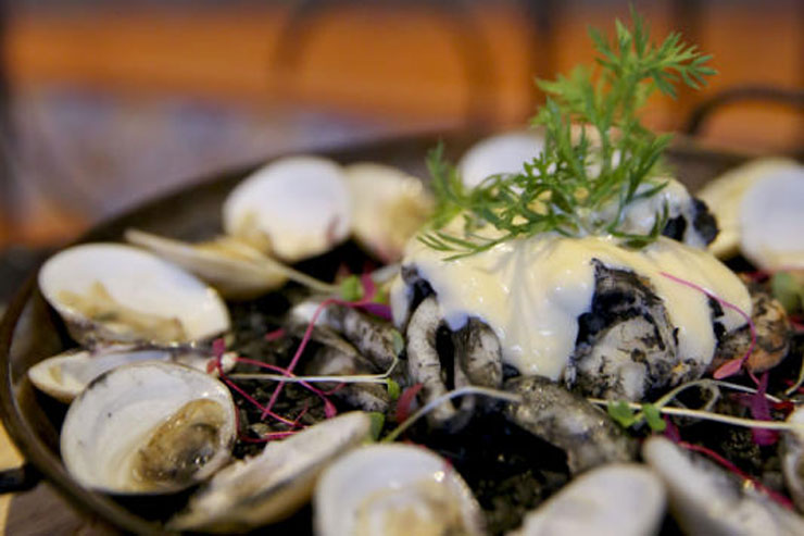 เมนูต่อมา Arroz Negro ข้าวผัดสเปนเมนูขึ้นชื่อ เป็นข้าวผัดซีฟู้ดจานใหญ่ที่มาพร้อมกับปลาหมึก และหอยตลับจากฝั่งทะเลไทย เริ่มต้นจากการนำข้าวผัดไปผัดกับหมึกจากน้ำปลาหมึก หอมหัวใหญ่ กระเทียม น้ำมันมะกอก ปรุงรสด้วยเกลือ ส่วนหอยตลับกับปลาหมึก นำไปอบกับซอส เสิร์ฟมาบนกระทะแบบสเปน สัมผัสได้ถึงกลิ่นหอมไหม้ของกระทะ รสชาติอร่อยกลมกล่อมทีเดียว
