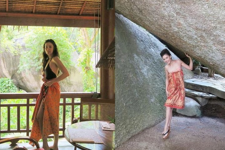 ศรีริต้า เจนเซ่น เที่ยวพักผ่อนเกาะสมุย นุ่งผ้าถุงกระโจมอกอวดผิวขาวเนียน