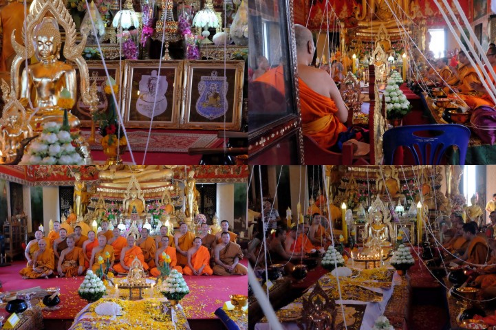 โดยในพิธีครั้งนี้ได้นิมนต์พระอาจารย์ซึ่งเป็นที่เคารพเลื่อมใสของพี่น้องประชาชนรวม 19 รูป โดยมี พระพิมลศรีลาจารย์ วัดลาดปลาดุก เป็นประธานจุดเทียนชัย, พระครูพิพิธชลธรรม (หลวงพ่อหลาย วัดนาจอมเทียน) เป็นผู้จุดเทียนที่ขันสาคร และ พระนันทวิริยาภรณ์ (หลวงพ่ออ่าง วัดใหญ่สว่างอารมณ์) เป็นผู้ดับเทียนชัย พร้อมด้วย พระครูไพบูลย์รัตนาภรณ์ (หลวงพ่อสมบูรณ์ วัดหงส์รัตนาราม ), พระครูสรภาสโฆษิต วัดบางแวก, พระครูใบฎีกาจิรพงษ์ ธีรวโร วัดจอมเกษ, พระครูปลัดยุทธนา วัดบางพุทธโธ, พระครูสุทธิสารโสภิต วัดพุตะเคียน, พระครูวีรกาญจนกิจ (หลวงพ่อสุรเจตน์ วัดหนองหิน ), พระครูสมุห์อวยพร วัดดอนยายหอม, พระครูสังฆรักษ์สมพงษ์ สารคนฺโท วัดโพธิ์ทองล่าง, พระอธิการ อภิชัย ธีรญาโณ วัดวังกระดี่ทอง, พระอาจารย์สุรสิทธิ์ สุรสิทโธ วัดไทร, พระอาจารย์สมเกียรติ สุรญาโณ วัดราษฎร์ศรัทธาราม, พระอาจารย์ชลเทพ อติจีโล พุทธอุทยานธรรมโกศล, พระอาจารย์วีระยุทธ์ อาภากโร วัดขรัวตาหนู, พระอาจารย์อำนาจ ขันติโก วัดถาวรวราราม, พระอาจารย์ภัคคพงฐ์ ติณฺณ วฎฺโฎ วัดดุสิดารามราชวิหาร, พระปลัดเอกสิษฏ์มงคล มหาวีโร วัดมกุฏกษัตริยารามราชวรวิหาร นั่งปรก