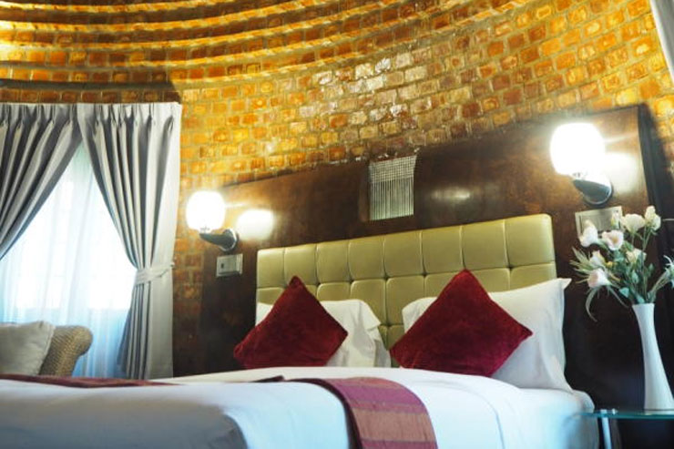 อีกความพิเศษแม้จะอยู่ติดกับสนามบินที่มีเครื่องบินขึ้นลงทุก 5 นาที ทว่าภายในห้องนอนแทบจะไม่ได้ยินเสียงรบกวนนั้นเลย เพราะห้องถูกออกแบบโดยการเลียนแบบสถาปัตยกรรมเตาเผาถ่านของเวียดนาม ใช้อิฐอย่างดีก่อสร้างไล่ระดับไปเป็นโดมสูง นอกจากทำให้ห้องปราศจากต้นเสาแล้ว ยังช่วยกำจัดเสียงรบกวนเครื่องบิน ดูหนังฟังเพลงหรือเพลินเพลิดอยู่ก็แทบไม่ได้ยินเสียง หากแต่เสียงฝนตกที่เป็นแนวดิ่งนั้นกลับได้ยินชัดกว่า คืนไหนเข้าพักแล้วฝนตกจะได้ความรู้สึกนอนอยู่ใต้สายฝนเลยทีเดียว