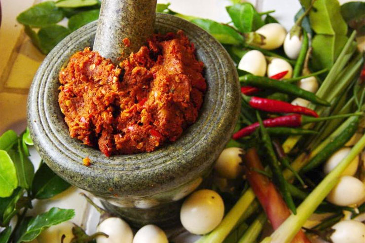 ความสำคัญที่อยู่เบื้องหลังของกินทุกวันนี้ผมว่า มีอยู่ 2 อย่าง เป็นเครื่องแกงและเครื่องปรุง เอาเรื่องเครื่องแกงก่อนครับ อาหารไทยกับเครื่องแกงเหมือนเป็นฝาแฝดแยกกันไม่ได้ สมัยก่อนต้องตำเองทั้งนั้น หลายคนที่ทำอาหารเก่งๆ ในทุกวันนี้ สืบทอดการทำอาหารจากแม่จากยาย งานแรกคือตำเครื่องแกง แม่หรือยายจะเป็นคนจัดพริกแห้ง หอม กระเทียม ข่า ตะไคร้ ผิวมะกรูด กะปิ ลงครกให้ เด็กก็ตำอย่างเดียว ละเอียดหรือไม่ละเอียดดูจากพริกแห้งต้องไม่เป็นชิ้นที่เรียกว่า แกงแล้วลอยใบ ต้องให้ละเอียดจนเนื้อเนียน ซึ่งกว่าจะละเอียดก็เล่นเอาเมื่อยแล้วเมื่อยอีก