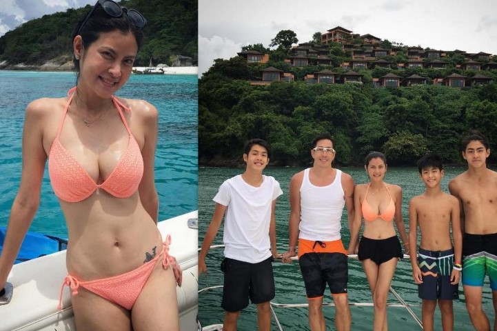 งานนี้ไม่รู้จะโฟกัสไปที่ใครดีระหว่างลูกชายวัยกำลังโตที่หล่อเหลาขึ้นทุกวันถอดเสื้อโชว์หุ่นกันไปอีก กับคุณแม่ปิ่นที่สวมชุดบิกินีอวดหุ่นแซ่บอกอึ๋มกระแทกตา ถึงแม้อายุขึ้นเลข 4 กลางๆแล้ว ยังสวยและเซ็กซี่ไม่เปลี่ยน