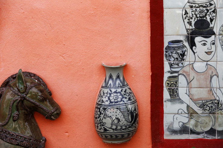 ถนนแคบๆ ที่เต็มไปด้วยงานศิลปะ โดยฝั่งกำแพงวัดถูกประดิษฐ์ให้เป็นงานปูนปั้นลอยตัว เกี่ยวกับการทำเครื่องสังคโลก ส่วนฝั่งกำแพงบ้านคน เจ้าของบ้านแต่ละหลังก็ทำงานศิลปะในแบบของตน อย่างบ้านช่างปูนปั้น ได้นำเศษจานชามสังคโลกมาประดับกำแพงเสียสวยงาม ส่วนบ้านจิตรกรก็ได้เพนต์กำแพงเสียวิจิตรอย่างกับแกลเลอรี่กลางแจ้ง