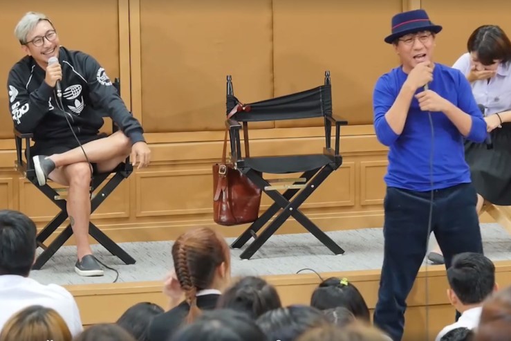 เฟซบุ๊กเพจ เดี่ยว 9 เผยเเพร่คลิปวิดีโอสุดฮาเเละเเฝงไปด้วยสาระ เมื่อ "โน้ต อุดม แต้พานิช" เเละ "โจอี้ บอย" ควงคู่กันมาเป็นวิทยากรให้ความรู้กับเหล่านักศึกษาที่มหาวิทยาลัยธุรกิจบัณฑิต เมื่อวันที่ 23 ส.ค. ที่ผ่านมา