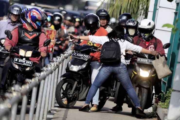 ไม่ยอมหลบให้รถมอเตอร์ไซค์ที่ขี่สวนเลนบนทางเท้า = ไม่มีน้ำใจ
