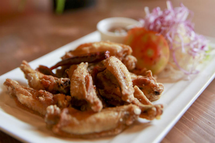อาหารของที่นี่จะเน้นเป็นอาหารง่ายๆ เน้นกินคู่กับเบียร์ ว่าแล้วลองสั่ง Mini Wings ปีกไก่ทอดกรอบมาพร้อมกับสมุนไพรไทย เสิร์ฟมาชิ้นเล็กๆ ขนาดพอดีคำ จะจิ้มกับน้ำจิ้มไก่ หรือน้ำจิ้มแจ่วรสแซ่บที่มาคู่กันด้วยก็ได้