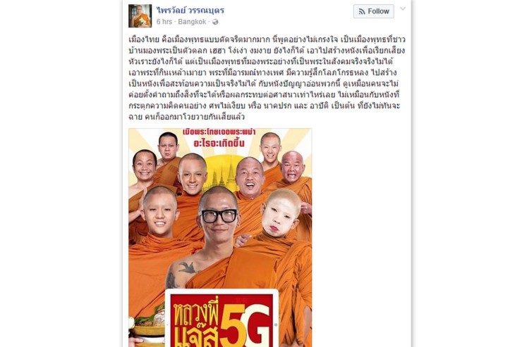 เป็นเมืองพุทธที่ชาวบ้านมองพระเป็นตัวตลก เฮฮา โง่เง่า งมงาย ยังไงก็ได้ เอาไปสร้างหนังเพื่อเรียกเสียงหัวเราะยังไงก็ได้ แต่เป็นเมืองพุทธที่มองพระอย่างที่เป็นพระในสังคมจริงจริงไม่ได้ เอาพระที่กินเหล้าเมายา พระที่มีอารมณ์ทางเพศ มีความรู้สึกโลภโกรธหลง ไปสร้างเป็นหนังเพื่อสะท้อนความเป็นจริงไม่ได้