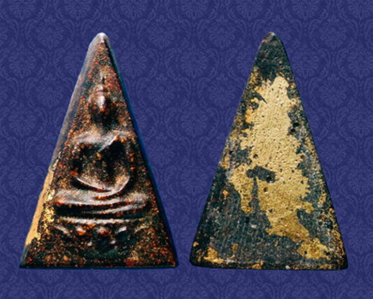 พระพุทธรูปพิมพ์ที่แกะถวายนั้น เป็นพระพุทธรูปพิมพ์นั่งปางสมาธิแบบขัดราบ พระบาทขวาทับพระบาทซ้าย ประทับเหนือดอกบัวบาน บน 5 กลีบ ล่าง 4 กลีบ รวมเป็น 9 กลีบ รูปทรงสามเหลี่ยมหน้าจั่ว พิมพ์ใหญ่ขนาดกว้าง 2 เซนติเมตร สูง 3 เซนติเมตรพิมพ์เล็กขนาดกว้าง 1.2 เซนติเมตร สูง 1.9 เซนติเมตร
