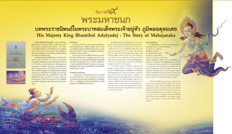4.พระมหาชนก ปี 2539 พระราชนิพนธ์เรื่อง พระมหาชนก มีทั้งภาคภาษาไทยและภาษาอังกฤษอยู่ในเล่มเดียวกัน พระบาทสมเด็จพระเจ้าอยู่หัวทรงแปลพระมหาชนกชาดกเสร็จสมบูรณ์ เมื่อปี 2531 และทรงพระกรุณาโปรดเกล้าฯ จัดพิมพ์ในโอกาสเฉลิมฉลองกาญจนาภิเษกแห่งรัชกาลเมื่อปี 2539 มีภาพวาดโดยศิลปินที่มีชื่อเสียงหลายท่าน ที่สำคัญที่สุดคือมีภาพฝีพระหัตถ์ของพระบาทสมเด็จพระเจ้าอยู่หัว