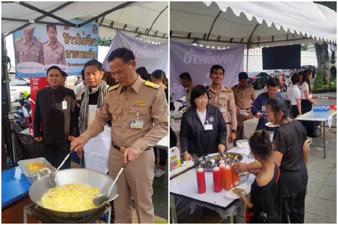 เจ้ากรมกิจการพลเรือนทหารเรือ จัดไข่เจียวสูตรพิเศษเพื่ออำนวยความสะดวกแก่ประชาชนที่เดินทางมาร่วมแสดงความอาลัยที่สนามหลวง