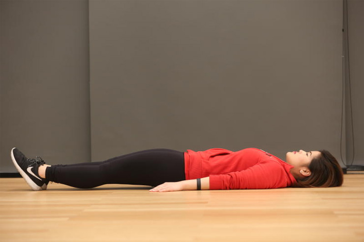 - หายใจออกพร้อมกับยกขาทั้งสองข้างขึ้น งอเข่าเล็กน้อย ห้ามหลังงอเพราะอาจจะทำให้ปวดหลังในอนาคตถ้าทำบ่อยๆ หายใจเข้าพร้อมกับค่อยๆ ลดขาลงจนเกือบถึงพื้นและทำท่าซ้ำ 15-20 ครั้ง ถือเป็น 1 เซต ทำ 3 เซต