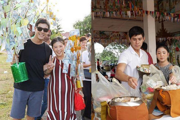 สามีดูแลไม่ห่าง! ฮารุ อุ้มท้องโต 7 เดือน ทำบุญทอดกฐินเมืองลาว