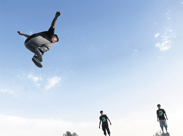 ในทุกสวนสาธารณะแทบทุกที่จะมีกลุ่มเด็กวัยรุ่นรวมตัวกันฝึกตีลังกาและกระโดดข้ามไปมาจากจุดหนึ่งไปอีกจุดหนึ่ง