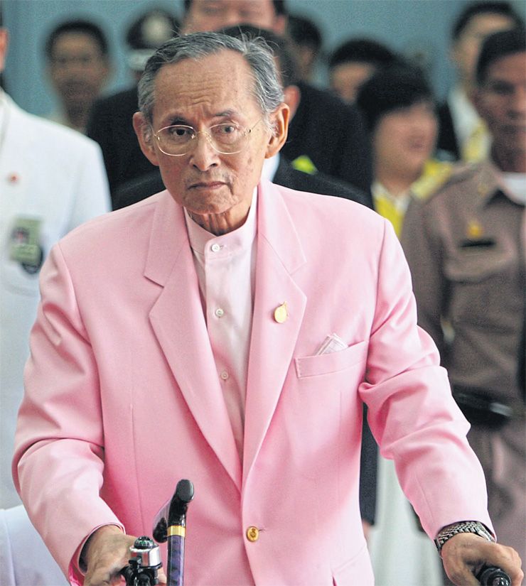 พระบาทสมเด็จพระปรมินทรมหาภูมิพลอดุลยเดชประทับบนรถเข็นพระที่นั่ง เสด็จลงจากอาคารเฉลิมพระเกียรติ โรงพยาบาลศิริราช เพื่อเสด็จฯ กลับพระตำหนักจิตรลดารโหฐาน โดยทรงฉลองพระองค์สูทสีชมพู มีพระพักตร์ยิ้มแย้ม ท่ามกลางพสกนิกรที่มารอเฝ้าฯ รับเสด็จ