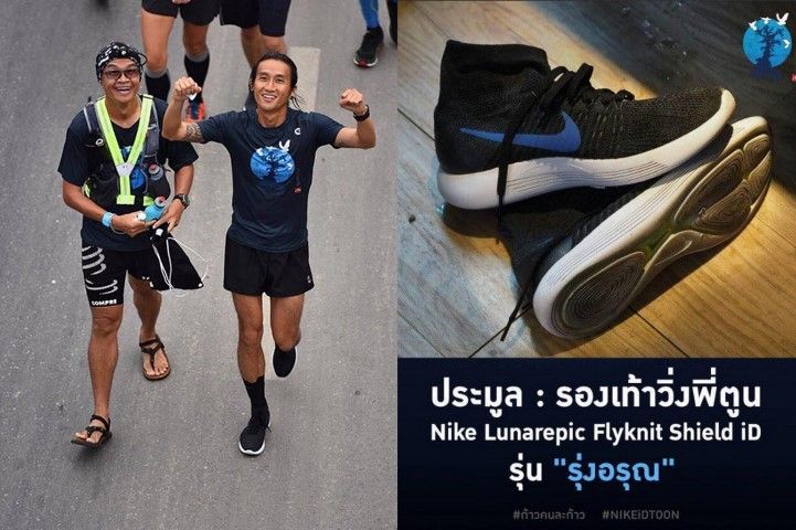สำหรับรองเท้าวิ่งยี่ห้อไนกี้ รุ่น Lunarepic Flyknit Shield iD ชื่อรุ่งอรุณ เป็นชื่อที่พี่ตูนบอดี้สแลม ตั้งชื่อให้กับบริษัทไนกี้และที่สำคัญคู่นี้เป็นรุ่นที่พี่ตูนเป็นผู้ออกแบบคู่เดียวในโลก ซึ่งรายได้ทั้งหมดบริจาคให้กับโรงพยาบาลบางสะพานเช่นกัน