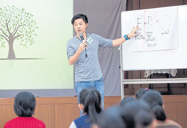 “แรงบันดาลใจของผมเกิดจากเพราะงานปัจจุบันที่ทำอยู่เป็นงานเชิงพัฒนาคน ทำให้ชีวิตคนเปลี่ยนไปในทางที่ดีขึ้นและเราเองก็ผ่านการเดินทางแบบนี้มาเหมือนกัน เมื่อก่อนเราไม่เคยเห็นตัวเอง พอได้เรียนรู้เกี่ยวกับภาวะผู้นำ การพัฒนาตัวเอง การมองข้อดีของตัวเอง การมองคนอื่นในมุมที่กว้างขึ้น ก็รู้สึกมีความสุขมากขึ้น เลยอยากแบ่งปันเรื่องนี้ให้กับคนอื่น และทำให้คนอื่นมีชีวิตที่ดีขึ้น ยิ่งเขารับรู้ได้เร็วโดยเฉพาะเด็กๆ ก็คิดว่าถ้าช่วยพวกเขาได้ก็น่าจะดี จึงอยากเป็นอาสาสมัครที่ให้ความรู้เรื่องนี้”