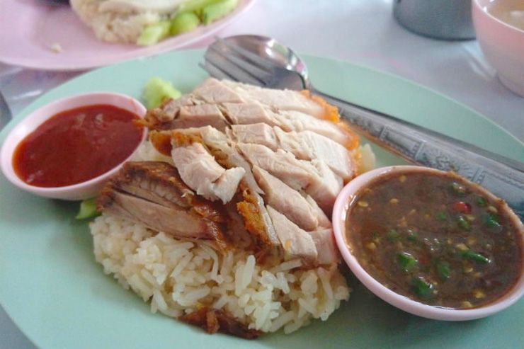 เปิดด้วยเมนูข้าวหมูกรอบ แต่ใช้ข้าวมันไก่แทนข้าวสวยเป็นเมนูสั่งพิเศษ เพราะตอนไปช่วงบ่าย 2 ข้าวสวยหมดพอดีเหลือแต่ข้าวมัน เลยจัดมาผสมกันสักครั้งในชีวิต เสิร์ฟมามีทั้งน้ำราดหมูแดงและน้ำจิ้มไก่มาคู่กันในจาน ปกติแล้วร้านที่เด่นเรื่องข้าวมันไก่ ข้าวหมูแดงจะด้อยแต่ร้านนี้กลับไม่ใช่อร่อยทั้งคู่ น้ำราดหมูแดงที่ให้มารสชาติเทียบเคียงร้านดังๆ ในกรุงเทพฯ ได้เลย หมูกรอบก็กรอบอร่อยราวกับเพิ่งทอดเสร็จใหม่ๆ ส่วนน้ำจิ้มข้าวมันไก่ก็รสชาติเด็ดจัดจ้าน กินคำแรกเข้าไปถึงกับร้องใช่เลย ไม่มากไม่น้อยไป รับประทานคู่กันก็อร่อยเข้าปากดี