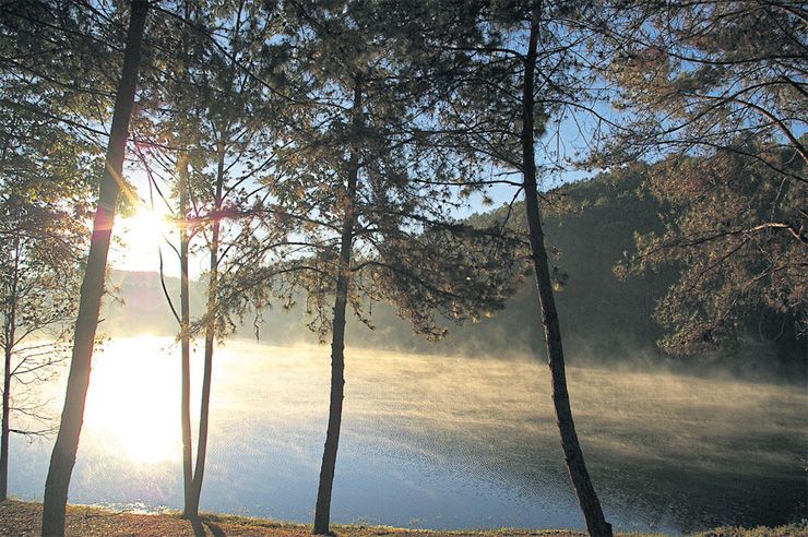 ยิ่งยามพระอาทิตย์ขึ้นจะสะท้อนผืนน้ำผ่านทิวสน และไอหมอกบางๆ ยิ่งเป็นภาพที่สร้างความประทับยากจะลืมเลือนกันทีเดียว แม้ในกระทั่งเวลาที่หมอกเลือนลางหายไปก็ยังคงเป็นภาพอันงดงามเย้ายวนให้หลายคนเดินทางมาเยือน
