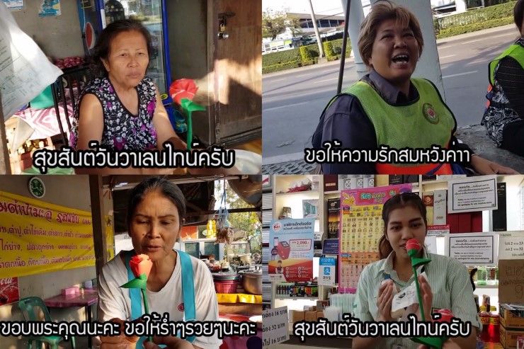 เพจ "เทพลีลา" โพสต์คลิปสุดน่ารักเมื่อชายหนุ่มรายหนึ่งเดินแจกดอกกุหลาบทำเองในวันวาเลนไทน์ สร้างรอยยิ้มให้กับผู้รับ