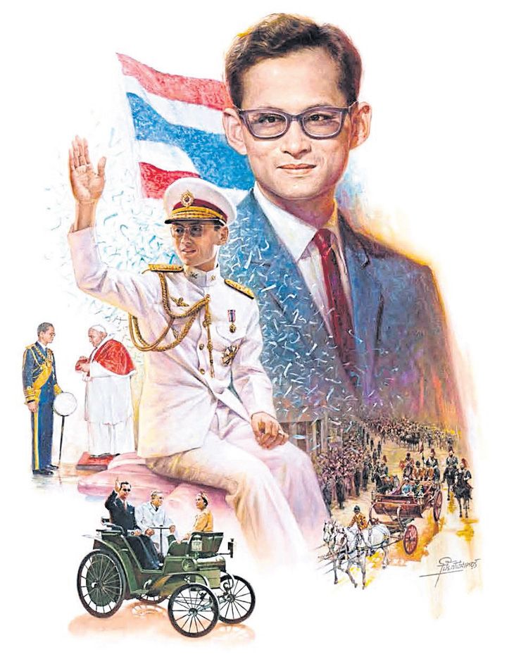 ส่วนรูปของรัชกาลที่ 9 เปี๊ยก โปสเตอร์ ใช้ศาสตร์และศิลป์ของงานกำกับภาพยนตร์และช่างวาด นำเสนอในรูปแบบ “ใบปิดหนัง” เล่าเรื่องลำดับตั้งแต่พระประสูติ ทรงพระเยาว์ ขึ้นครองราชย์ อภิเษกสมรส พระราชประวัติ และพระราชกรณียกิจต่างๆ โดยชมรมวิจารณ์บันเทิง นำภาพมาพิมพ์เป็นหนังสือด้วยกระดาษวาดเขียน จำนวน 13 ภาพ ที่ควรค่าแก่การเก็บสะสม และรายได้ทั้งหมดจะมอบให้แก่ เปี๊ยก โปสเตอร์