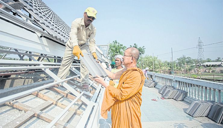 จึงขอเชิญชวนท่านผู้มีจิตศรัทธาทั้งหลายได้ร่วมเป็นเจ้าภาพจัดซื้อกระเบื้องมุงหลังคาราคาแผ่นละ 100 บาท ซึ่งทางวัดจะใช้ทั้งหมด 4 หมื่นแผ่น โดยโอนเงินผ่านบุญชีธนาคารกรุงเทพชื่อบัญชี เพื่อวัดไทยกุสินาราเฉลิมราชย์-อินเดีย เลขบัญชี 115-4-15745-5 หรือติดต่อ พระครูนรนาถเจติยาภิรักษ์ (สมพงศ์) โทร.+91-900-500-7063, +91-900-500-7032