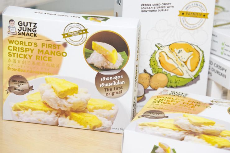 กระทั่งเดือน ม.ค. 2560 สามารถผลักดันสินค้า 2 ตัวแรกได้สำเร็จ คือ ลำไยไส้ทุเรียนและทุเรียนฟรีซดราย ภายใต้แบรนด์กั๊ตจังสแนค ส่วนข้าวเหนียวมะม่วงอบกรอบ จัดจำหน่ายในเดือนถัดมา ถือเป็นเจ้าของสูตรเจ้าแรกในโลก (World’s First Crispy Mango Sticky Rice)