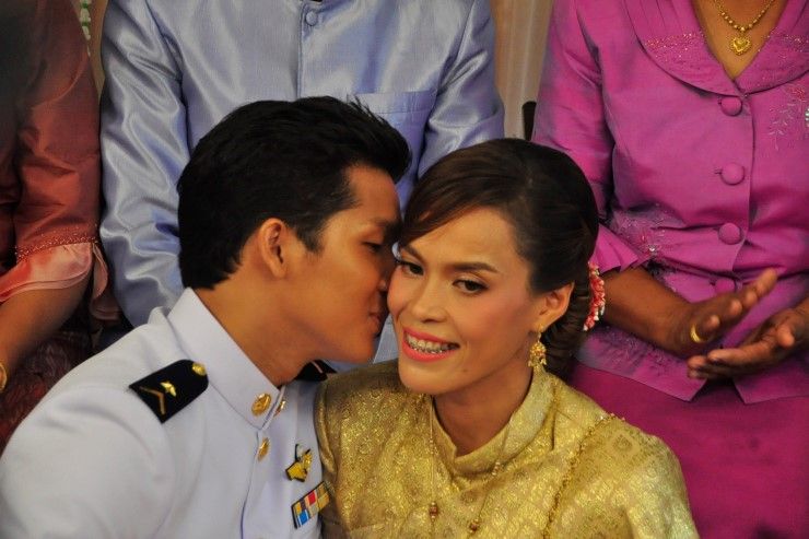 สำหรับงานวิวาห์ในครั้งนี้ได้มี พิธีสงฆ์ในช่วงเช้า และพิธีแห่ขันหมากตามประเพณีไทย โดยเจ้าบ่าวตั้งขบวนแห่ขันหมากตั้งแต่ปากทางเข้าหมู่บ้านระยะทาง 500 เมตร เพื่อเข้าไปสู่ขอเจ้าสาว โดยมีการกั้นประตูเงินประตู ทองของบรรดานักกีฬาวอลเลย์บอลหญิงที่เป็นเพื่อนสนิทของเจ้าสาว จากนั้นเป็นพิธีหมั้น โดยมีสินสอดเป็นเงินสด 1,200,000 บาท, ทองรูปพรรณต่างๆน้ำหนัก 14 บาท แหวนเพชร 2 วง และต่างหูเพชร อีก 1 คู่ โดยพ่อแม่ฝ่ายชาย และพ่อแม่ฝ่ายหญิง รวมทั้งญาติผู้ใหญ่ของสองฝ่ายเป็นสักขีพยาน พร้อมทั้งการสวมแหวนแต่งงานให้กันและกัน