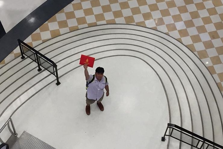"ผมจึงเกิดความคิดฉลองใหญ่ด้วยการถือประกาศนียบัตรตระเวนไปถ่ายกับบุคคล และตามสถานที่ต่างๆทั่วเมืองโคราชรวมกว่า 40 แห่ง เช่นถ่ายกับครูประจำชั้น, ครูฝ่ายปกครอง, ครูที่ปรึกษา, ถ่ายบนถนนหน้าโรงเรียน, หน้าห้องน้ำโรงเรียน, หน้าศาลพระภูมิ, หน้าธนาคาร, ที่บันไดเลื่อนห้างเดอะมอลล์, บริเวณโรงภาพยนตร์, เซเว่นอีเลฟเว่น, บริเวณสวนสนุก และรถเข็นขายส้มตำ เป็นต้น เพราะแต่ละแห่งล้วนมีความทรงจำดีๆ ช่วงที่กำลังเรียนอยู่ชั้น ม.6 ที่โรงเรียนบุญวัฒนาแล้วนำมาโพสในเฟซบุ๊กส่วนตัว รู้สึกดีใจ ไม่คาดคิดว่าจะมีคนให้ความสนใจมากมายขนาดนี้"