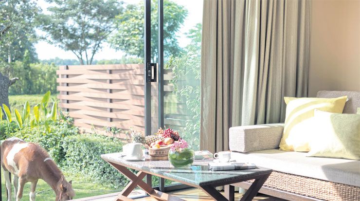 นอกจากนี้ รีสอร์ทยังมีมุมสวนผักและสวนสมุนไพรไทยให้ได้ชมและลองปลูก รวมทั้งเส้นทางปั่นจักรยานชมธรรมชาติ เพื่อให้สัมผัสการใช้ชีวิตแบบสโลว์ไลฟ์ที่ทำได้ง่ายๆ ใกล้ตัว