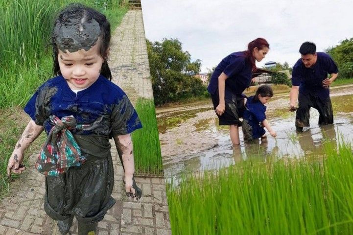 ตั๊ก บริบูรณ์ พาลูกสาว น้องบีลีฟ ไปดำนาปลูกข้าวสัมผัสวิถีชีวิตชาวนา จนเนื้อตัวมอมแมมไปด้วยโคลน