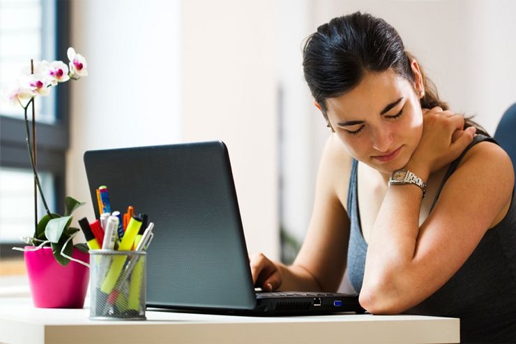 การนั่งหน้าโต๊ะทำงานนานๆ อาจทำให้ปวดเมื่อยที่หลัง คอ บ่า และก้นกบ ซึ่งส่วนใหญ่มักเกิดจากการเกร็งกล้ามเนื้อเวลานั่งทำงาน และท่านั่งของแต่ละคน ซึ่งไม่ควรปล่อยไว้นาน หากเกิดอาการเหล่านี้บ่อยๆ ให้ลองปรับท่านั่งให้สบายขึ้น ปรับความสูงต่ำของเก้าอี้ ให้ตัวเรานั่งพอดีกับหน้าจอคอมพิวเตอร์ในระดับสายตา ไม่ต้องก้มหรือเกร็งไหล่เวลาพิมพ์งาน และอาจหาหมอนหรือเบาะรองนั่งมารองบริเวณหลังและก้นกบด้วยก็ได้