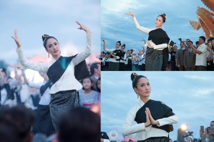 แต้ว ณฐพร นางเอกละคร นาคี ร่วมรำบวงสรวงพญานาคริมฝั่งแม่น้ำโขงในคืนวันออกพรรษา