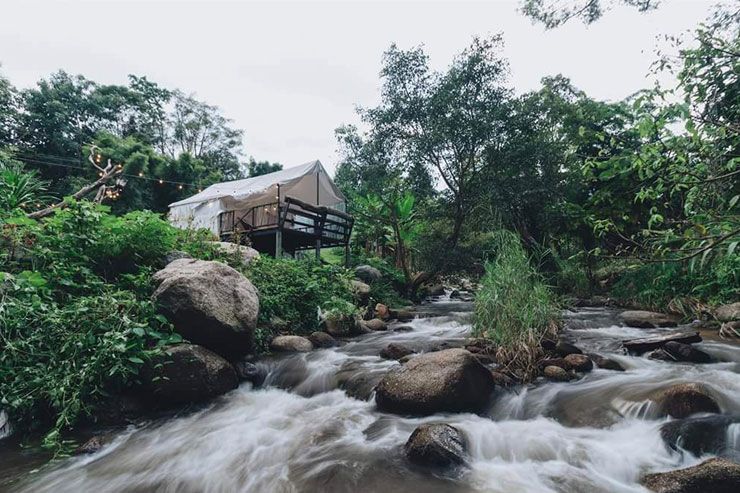 สถานที่ในฝันให้บริการบ้านพักเพียง 6 หลัง ได้แก่ บ้านหินอาบจันทร์และบ้านธารกล่อม ลักษณะเป็นบ้านไม้ริมน้ำ พักได้ 3 คน พร้อมห้องน้ำในตัวและระเบียงใหญ่ไว้นอนรับลมเย็น กระโจมเพียงน้ำและกระโจมเพียงดาว ลักษณะเป็นกระโจมริมน้ำสุดเก๋ พักได้ 2 คน โดยกระโจมเพียงน้ำเป็นสีครีมแบบซาฟารี ส่วนกระโจมเพียงดาวเป็นสีขาวสไตล์มินิมอล ทั้งสองกระโจมมีห้องน้ำในตัวและมีระเบียงติดลำธารที่สามารถก้าวขาลงไปแช่น้ำได้ทันที