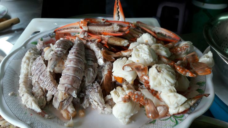 ส่วนใครที่อยากกินกรรเชียงปู ก้ามปู กั้งทะเลล้วนๆ แบบเนื้อเน้นๆ เจ๊อี้ดยินดีจัดเต็มเมนูลวกจิ้มให้กินอย่างจุใจในราคาจานละ 200 บาท