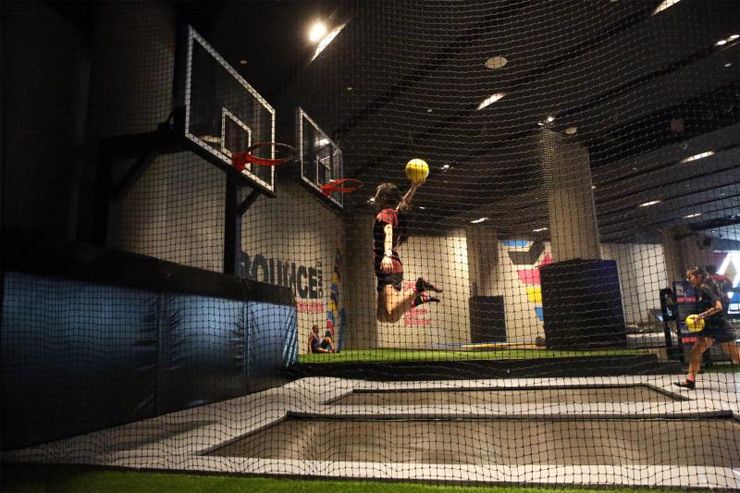 โซนสลัม ดั๊งค์ มี 2 แป้น ถ้ายังไม่มีทักษะการโดด ให้กระโดดโยนบอลลงห่วงปกติไปก่อน ส่วนนี้ส่วนมากคนที่มีทักษะเล่นบาสเกตบอลจะมาหัดสแลมดั๊งค์ และโซนดอดจ์บอล ที่เอาการเล่นดอดจ์บอลมาผสมผสานกับแทรมโพรีน เล่นฝั่งละ 8 คน มีกฎกติกา ห้ามปาหัว ปาโดนฝ่ายตรงข้าม ฝ่ายตรงข้ามต้องออก แต่ถ้าเราปาไปฝ่ายตรงข้ามรับบอลได้ ฝ่ายเราต้องออก 1 คน