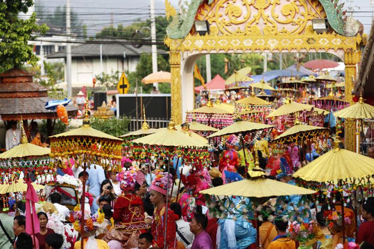 โดยตลอดทั้งปีจะมีงานบุญประเพณีเกือบทุกเดือน เช่น ประเพณีตานข้าวหย่ากู้ ประเพณีบูชาจองพารา ประเพณีเขาวงกต และที่เพิ่งผ่านพ้นไปเมื่อวันที่ 3-6 เม.ย. คือ “ปอยส่างลอง”