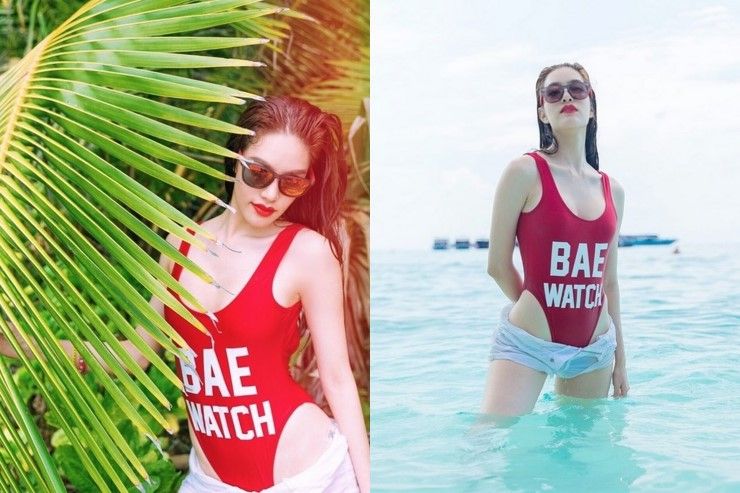 งานนี้ สาวเกรซ เตรียมตัวมาดีกับชุดว่ายน้ำวันพีชสีแดงสด ตัดกับผิวที่ขาวสู้แดดแล้วภาพจึงออกมาเป๊ะปังแบบที่เห็น ถึงแม้จะปิดช่วงล่างเอาไว้ให้เซ็กซี่แต่พองาม เพราะแฟชั่นเซ็ตนี้บอกเลยว่าขัดใจคุณแม่ของเธอสุดๆแต่ก็สะดวกแบบนี้