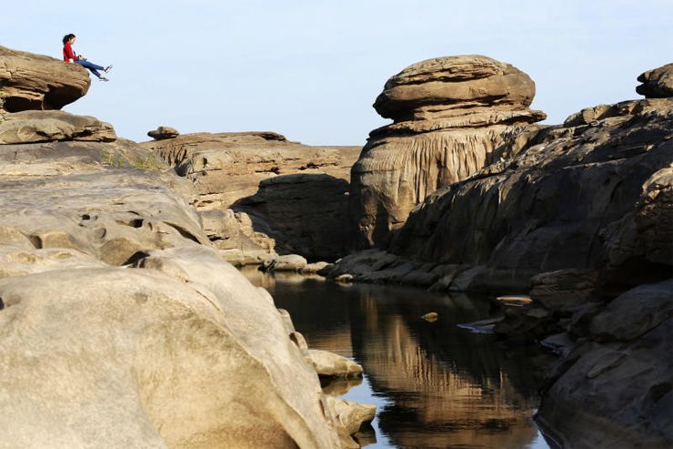 ตามพื้นผิวหน้าของลานหินพบว่าเต็มไปด้วย “กุมภลักษณ์” หรือ “หลุมปากหม้อ” ซึ่งเกิดจากกระบวนการกัดเซาะและขัดสีลานหิน โดยก้อนกรวดและทรายที่พัดพามากับแม่น้ำโขงในฤดูน้ำหลาก