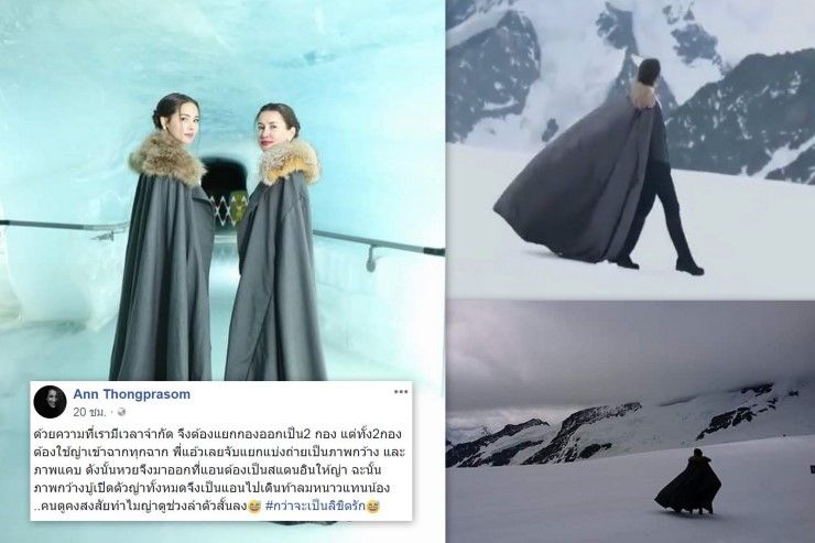 ฉะนั้นภาพกว้างบู้เปิดตัวญ่าทั้งหมดจึงเป็นแอนไปเดินท้าลมหนาวแทนน้อง ..คนดูคงสงสัยทำไมญ่าดูช่วงลำตัวสั้นลง #กว่าจะเป็นลิขิตรัก #ลิขิตรักthecrownprincess @thongentertainment"
