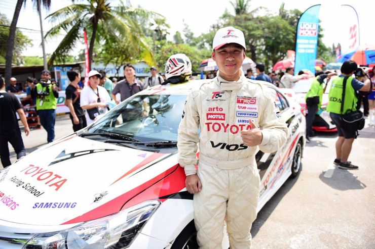 “หลังจากที่ผมเรียนเพิ่มทักษะในการขับขี่แล้ว ก็ลองสมัครเพิ่มเพื่อไปสอบคัดเลือกเข้าสังกัดโตโยต้า เรซซิ่ง สกูลทีม และประสบความสำเร็จได้รับคัดเลือกเข้าทีมในปี 2015 จาก 100 คน เหลือ 2 คน หลังจากที่เรียนมาแล้ว 3-4 คอร์ส ตอนอายุ 19 ปี ซึ่งถือว่าเริ่มช้านะครับ คนอื่นเขาเริ่มกันตอนเรียนมัธยมปลายกัน ซึ่งจะพิจารณาจากการแข่งทั้งภาคทฤษฎีและปฏิบัติ ตอนนั้นที่บ้านรู้แต่เขาก็ไม่ค่อยสนับสนุนสักเท่าไร อยากให้เรียนอย่างเดียว แต่เขาเห็นผมชอบจริงๆ ก็ไม่ได้ขัดขวางอะไร” เขาเล่าถึงจุดเริ่มต้นให้ฟัง