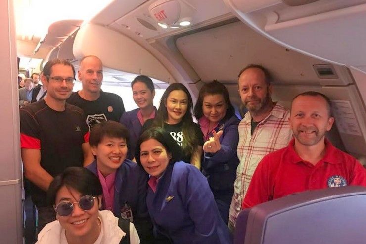 โดยโพสต์ภาพทุกคนสีหน้ามีความสุขยิ้มแย้ม พร้อมข้อความลงอินสตาแกรมระบุว่า "Arrived safely with all divers n rescuers ถึงลอนดอนเรียบร้อยค่ะ โชคดีได้ร่วมเดินทางมากับนักดำน้ำจากประเทศอังกฤษที่มาช่วยน้อง ๆ ชาวหมูป่าอเคเดมี่ถ่ายภาพกันใหญ่"