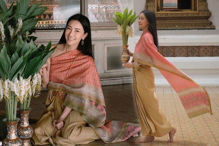 สะกดทุกสายตา! "นุ่น วรนุช” แต่งชุดไทยตามแบบกุลสตรี ทำบุญวันเข้าพรรษา ที่วัดภูเขาทอง